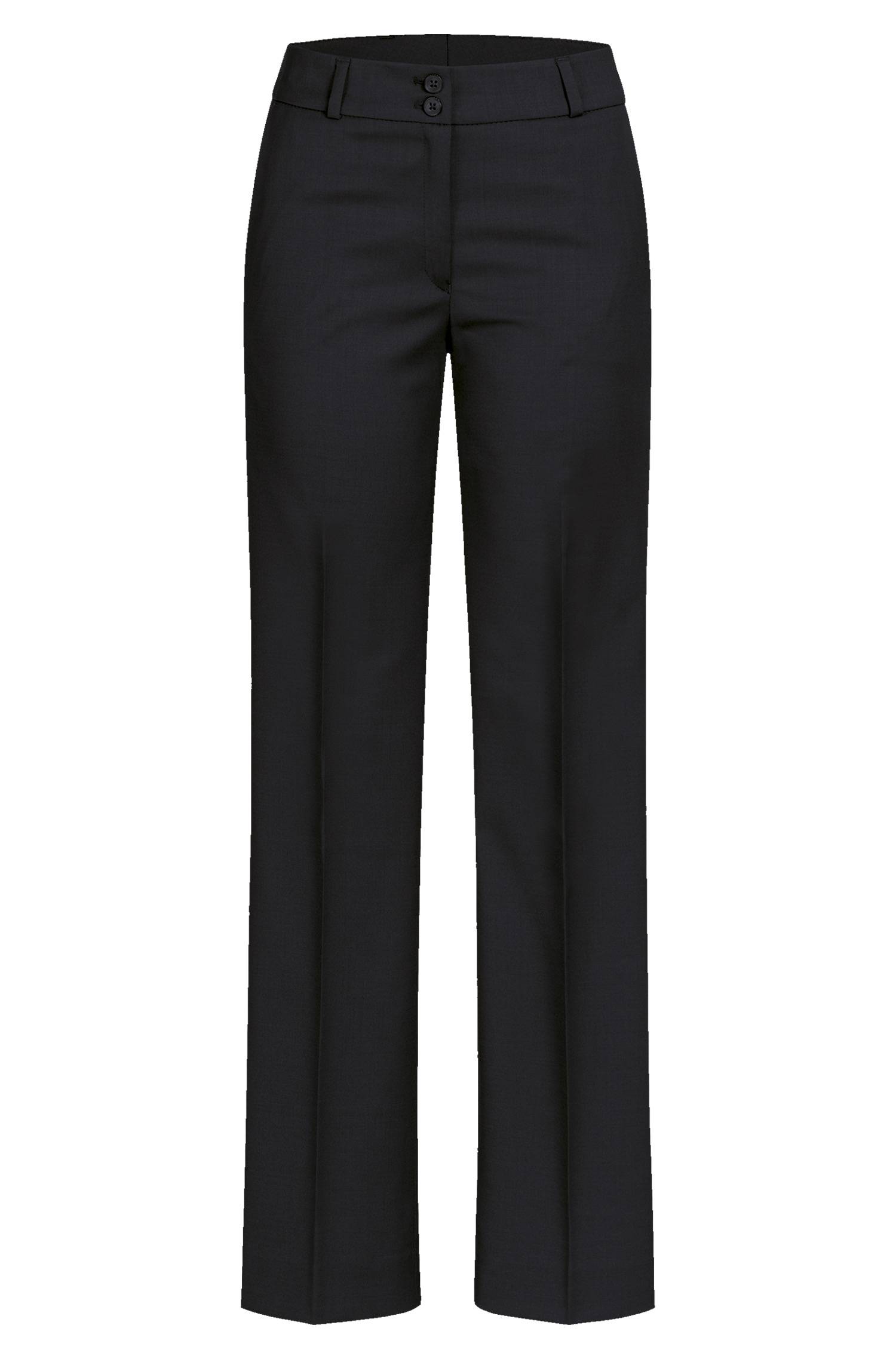 Pantalon pour femmes RF Modern 37.5 Coupe classique, taille haute, coupe bootcut, 2 poches latérales, 2 poches arrière invisibles, large ceinture à double boutonnage, doublure à l’avant, largeur au bas 50 cm | Taille 38, longueur entre les jambes 82 cm.