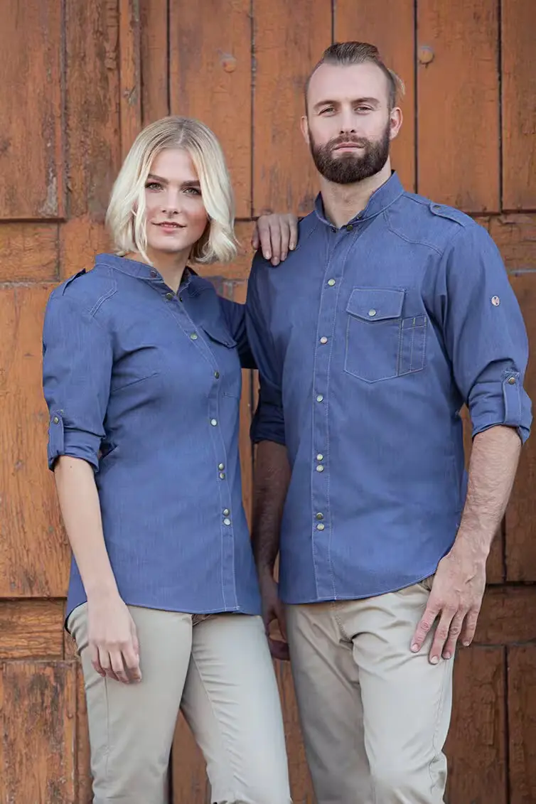 Herren-Jeanskochhemd, vintage blue