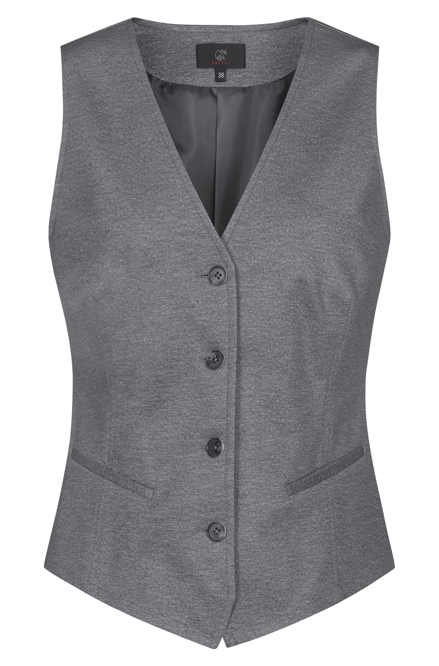 Damen-Jerseyweste RF Casual Regular Fit, 4-Knopf, 2 Leistentaschen, Stoffrücken, halbgefüttert, Rückenlänge 55 cm | Gr. 38. ·Gewebe: 67% Polyester 28% Viskose 5% Elasthan, 270 g/m² GRÖSSEN: 32 – 54
